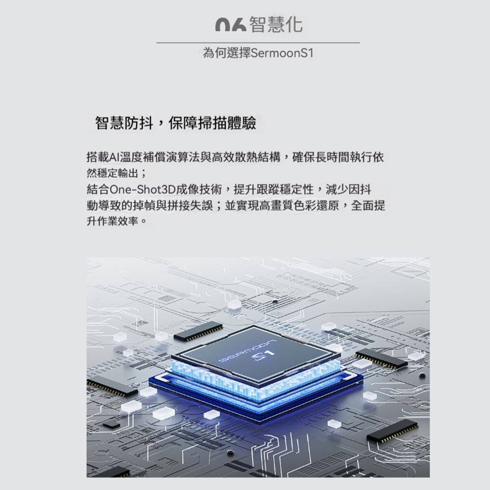 不論是工業檢測、逆向工程、產品設計、醫療教育,還是數位文創、AR/VR 建模,SERMOON S1 都能勝任。其便攜設計與多模式切換,使其成為工作室、企業與教育機構的最佳選擇。購買一台,就能涵蓋從微小到大型物件的全場景掃描需求,是專業用戶與進階玩家不可或缺的旗艦機型。
