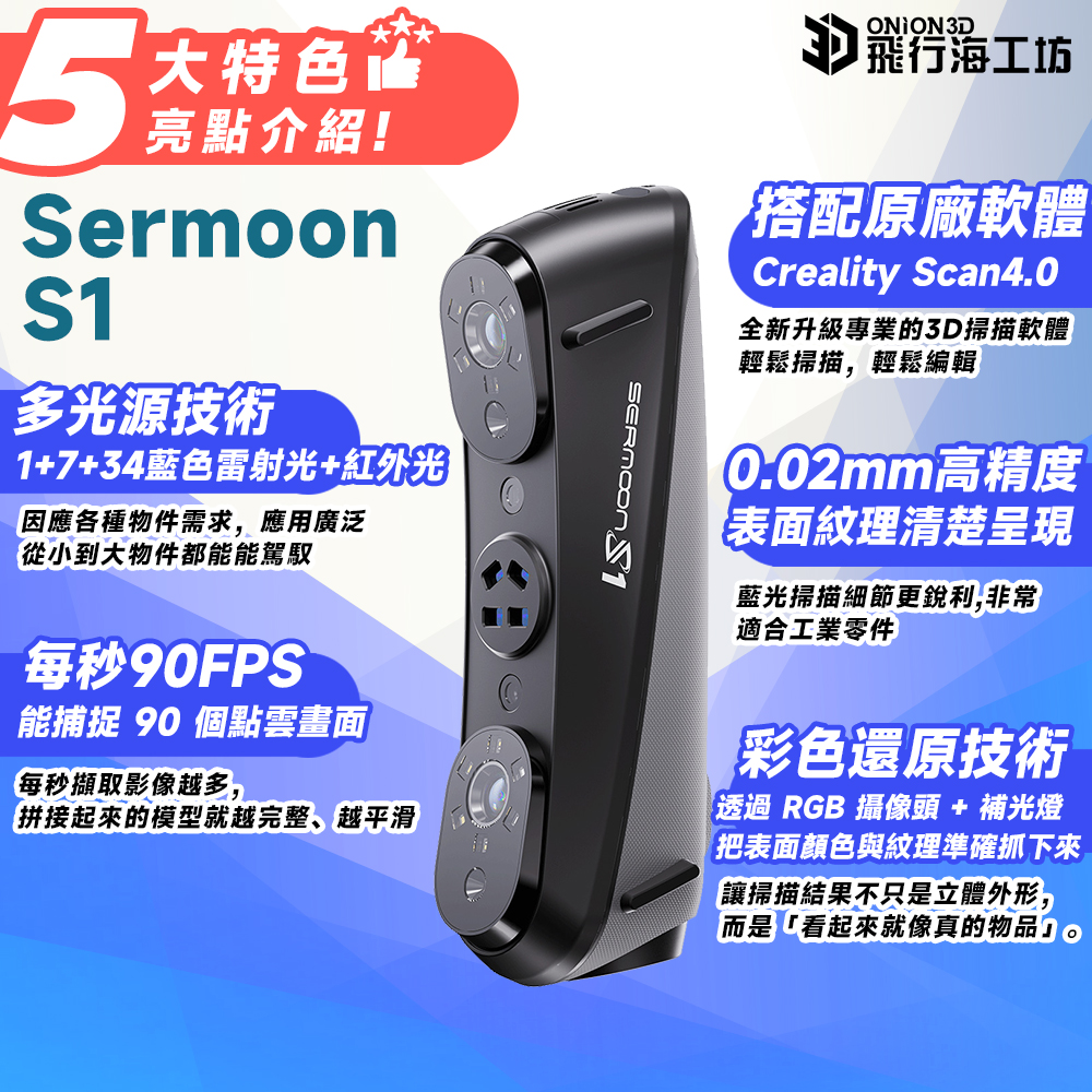 【飆速掃描一次到位】創想 Sermoon S1 工業級3D掃描器 藍光掃描器 多光源 逆向工程 高精度 0.02mm