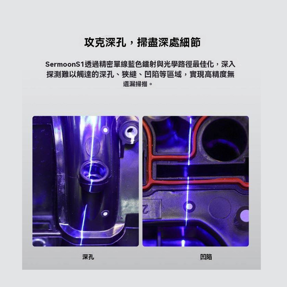搭載專業演算法與光學結構,SERMOON S1 能深入捕捉深孔與凹槽中的細節,避免資料遺漏。